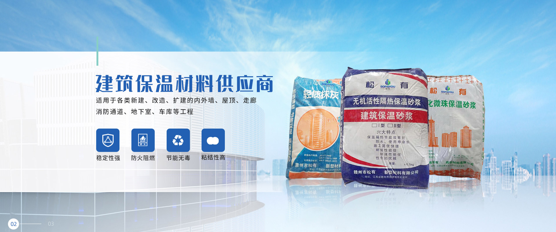 江西松有新型材料有限公司,主要從事保溫材料、防水材料銷(xiāo)售,兼營(yíng)建筑材料、裝飾材料和金屬材料等銷(xiāo)售,主要產(chǎn)品有巖晶砂、高分子益膠泥、輕質(zhì)抹灰砂漿石膏、防滲抗裂砂漿、玻化微珠保溫砂漿、砌塊砌筑粘接劑、無(wú)機(jī)活性隔熱保溫砂漿、加氣磚專(zhuān)用砌筑砂漿等。